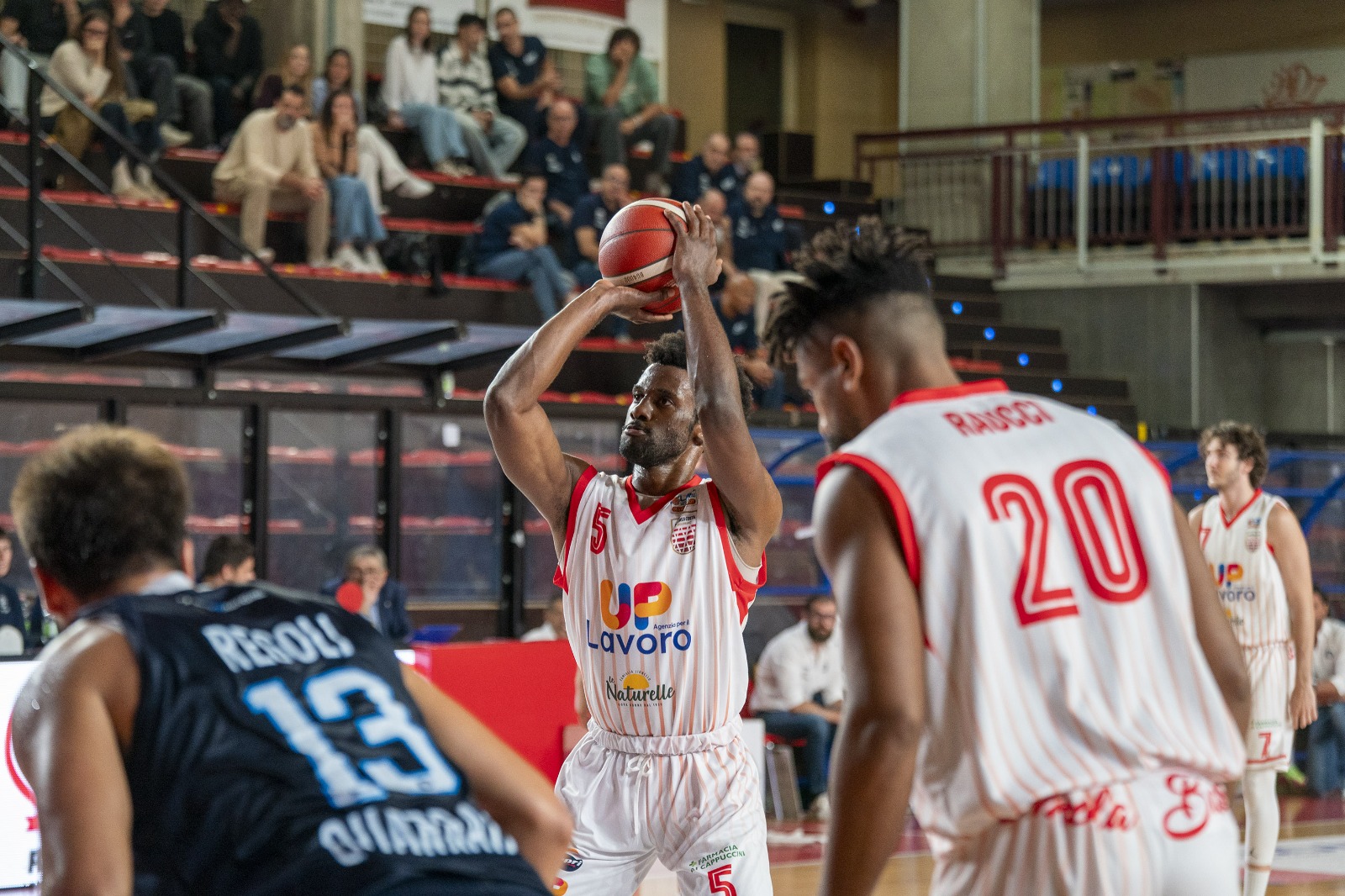 Poi un 9-0 in 3′ nel secondo quarto (difesa intensa) ristabilisce le gerarchie. Quarrata rientra (29-26), ma non aggancia. Terzo quarto con la zona ospite, piccoli fastidi superati col massimo vantaggio +13 alla terza sirena. Una tripla di Sanguinetti (Mvp) a metà ultimo tempo vale il 64-48. Dopo solo passerella.