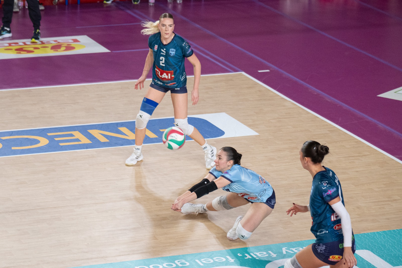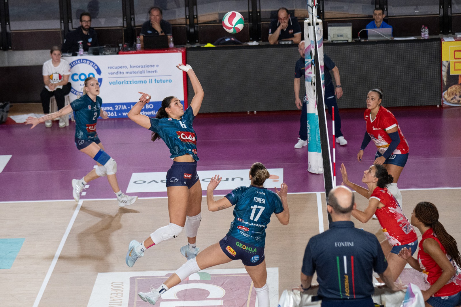 Alla fine la qualità di Malik, l’esplosività di Hoogers e il coraggio delle altre ha fatto la differenza su Modena, trascinata dalla ex di turno Arianna Visentin, splendida protagonista insieme alla esperta palleggiatrice Lancellotti.