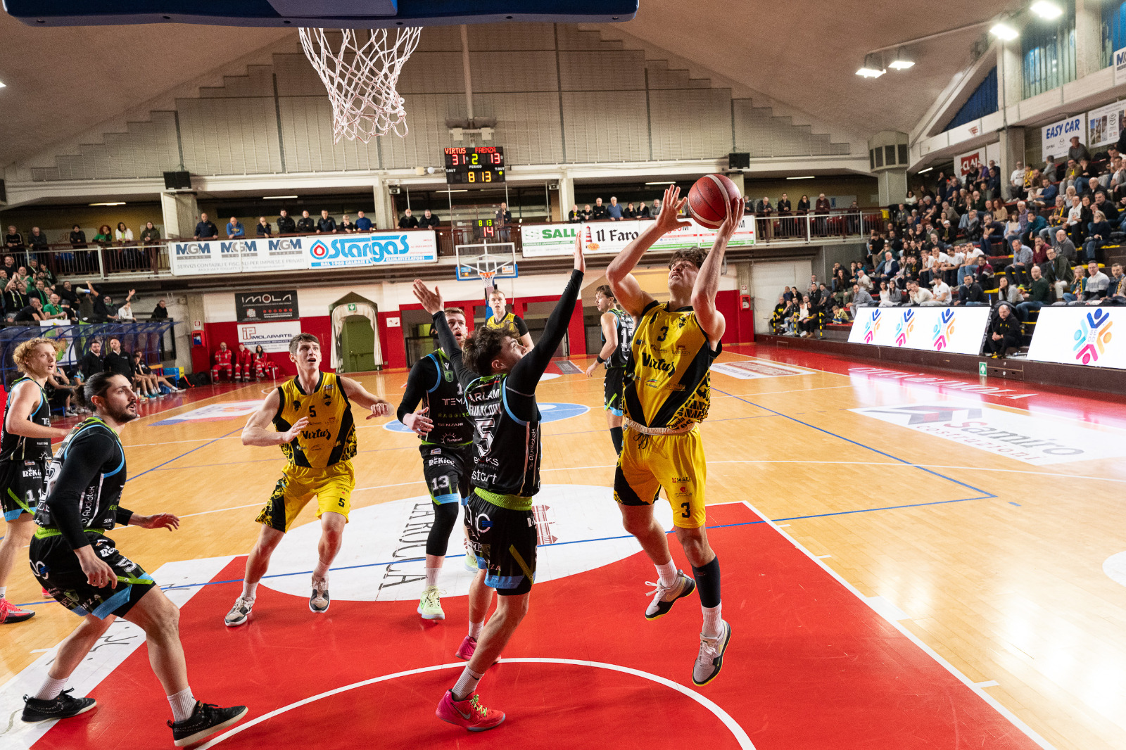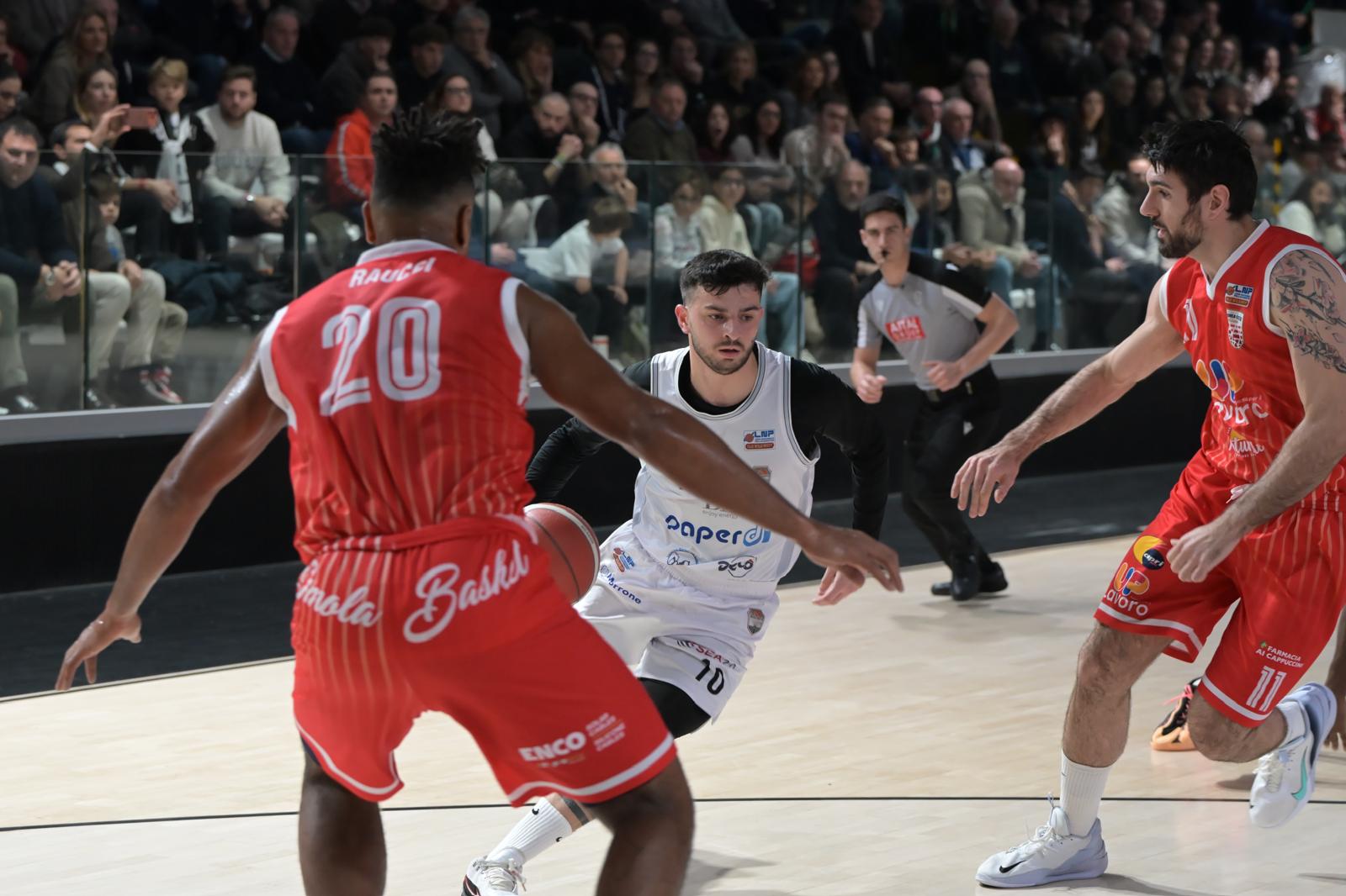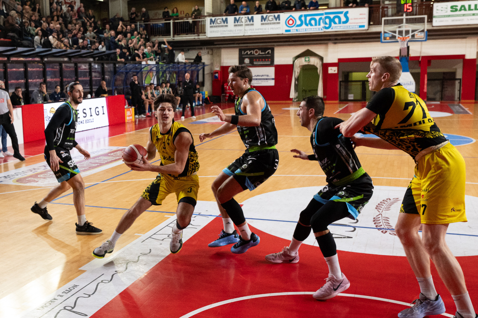 Le medie al tiro dei biancorossi sono deficitarie ma la difesa è il credo di Dalmonte (6 recuperi a 3) che sta in partita appaiando Caserta alla pausa. Si continua con Caserta appena avanti fino al 63-60 firmato da Zedda e Sanguinetti. All’Andrea Costa manca però l’ultimo metro e il derby di Enzo Esposito lo vince la Juve.