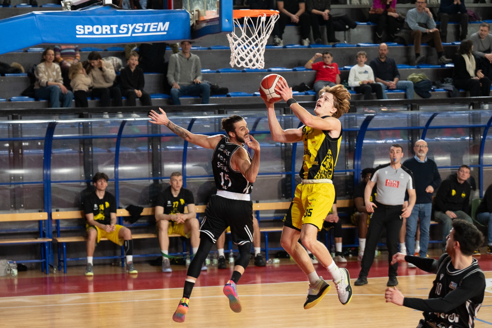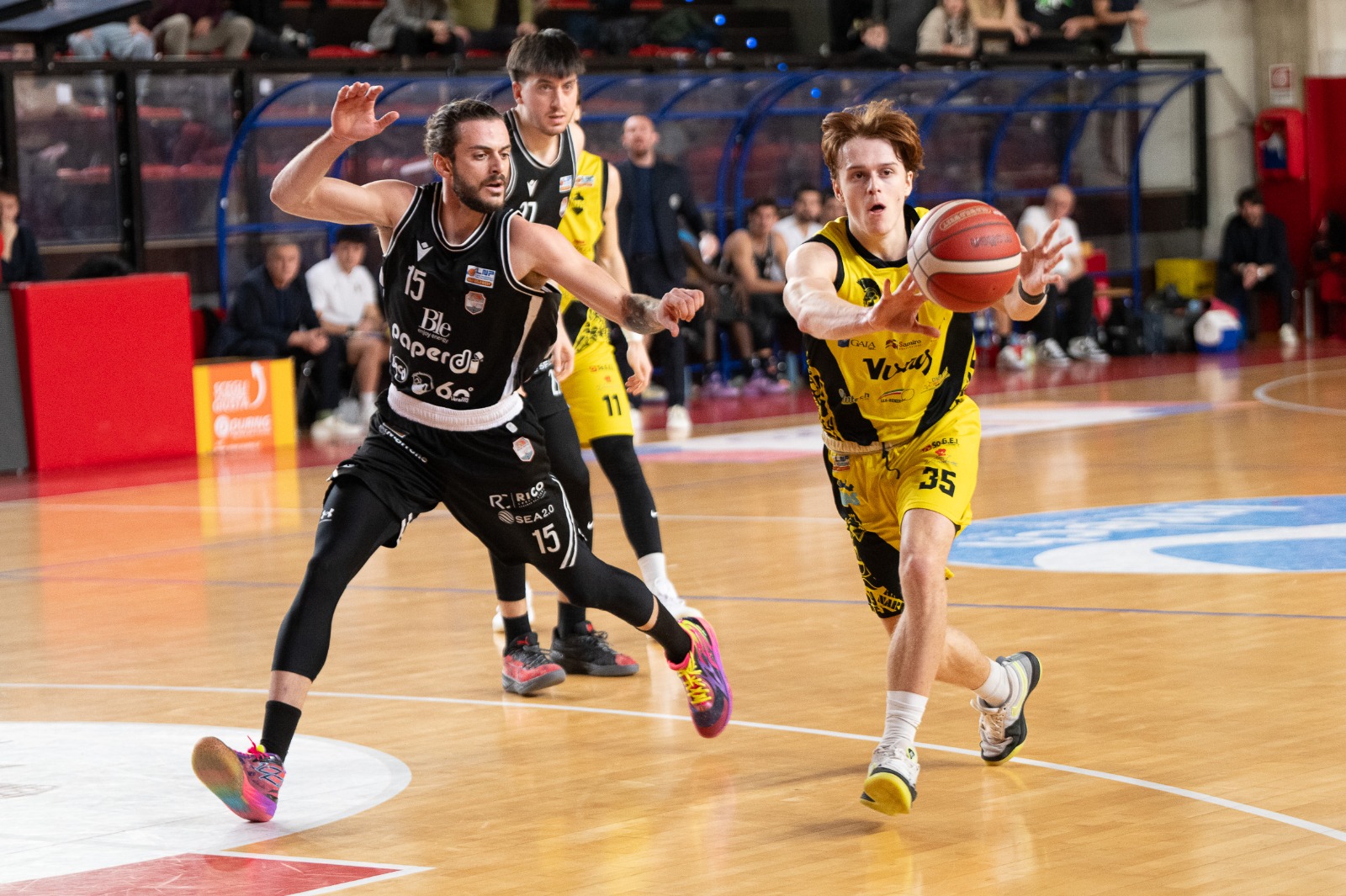 Allo start D’Argenzio e Pollini sprintano più di Jacobs e Tortu. Stankevicius dispensa assist (3) e Giorgi punti (2 su 2 e 2 su 3 da tre) e la partita è piacevole.