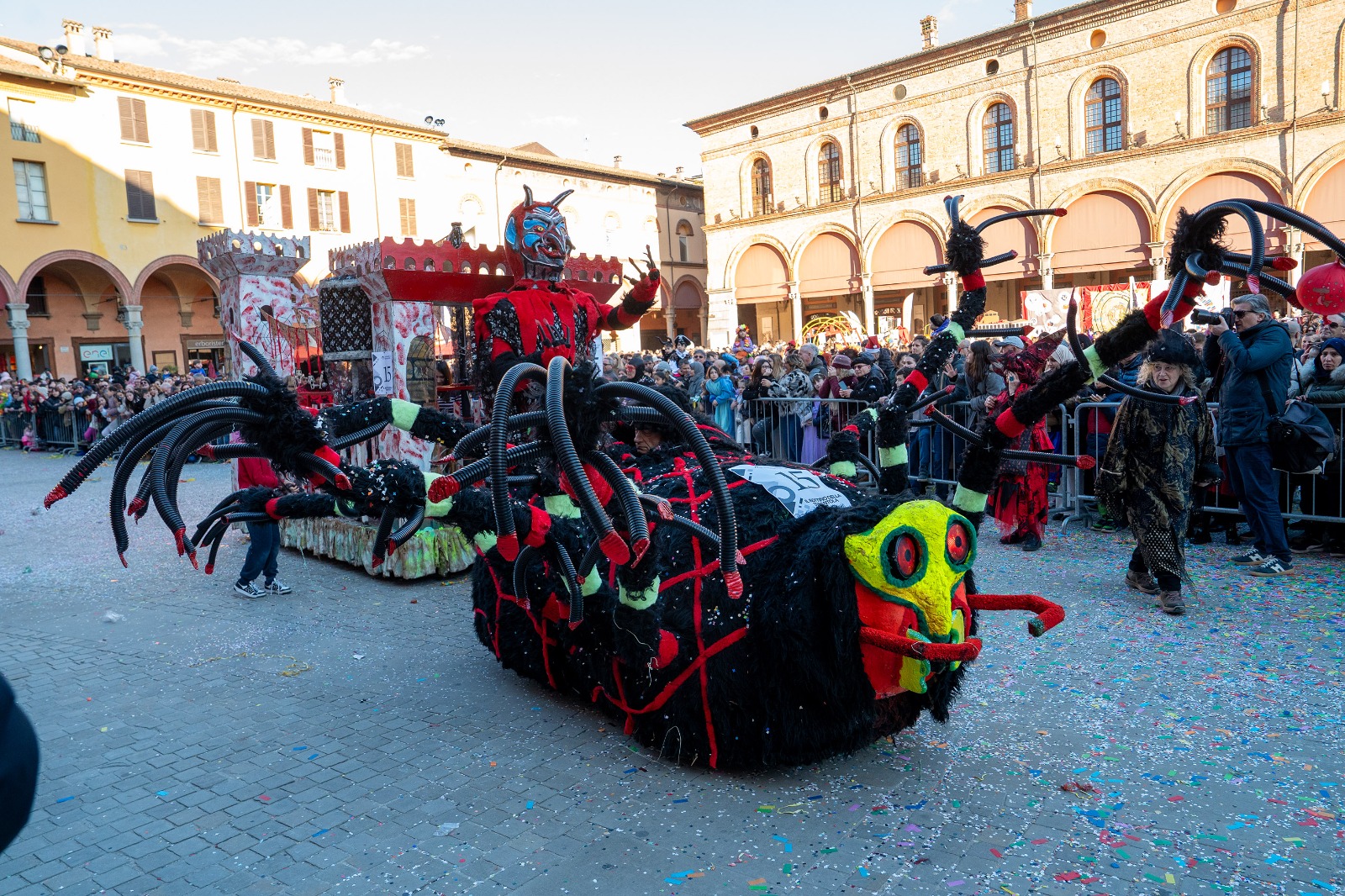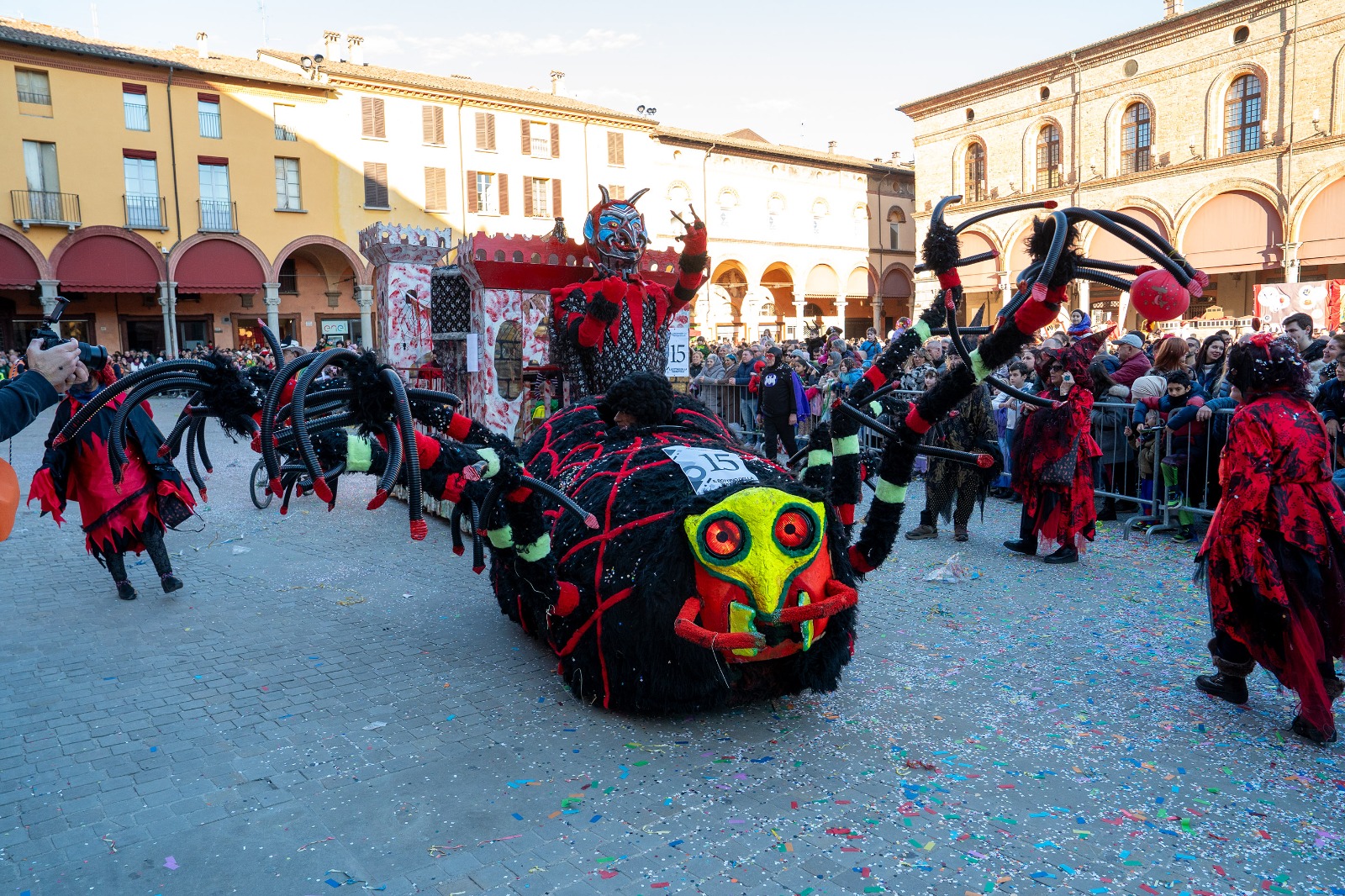 Un pomeriggio di festa per la sfilata del Carnevale dei Fantaveicoli organizzato dal Comune di Imola domenica 15 febbraio, con oltre 24.500 spettatori stimati dagli organizzatori. Quindici i partecipanti e quattro le categorie in concorso: Fantaveicoli, Fantaveicoli Scuole, Gruppi Mascherati Scuole e Gruppi Mascherati. Primo classificato nella categoria Fantaveicoli è stato Amici dell’Allegria, con «Il bottino della Tarantola», secondo il Centro giovanile Sesto Imolese e terzo il Centro Giovanile Ca’ Vaina. Nella categoria Fantaveicoli Scuole, primo posto per l’Ic1 con «L’essenziale è invisibile agli occhi», secondo l’Ic7, terzo l’Ic6». Nei Gruppi mascherati Scuole, l’Ic5 ha ottenuto il primo posto con «Alice nel paese delle meraviglie», mentre al secondo e al terzo si sono classificati l’Ic2 e l’Ic6. Nella categoria dei Gruppi mascherati, vittoria per Manifatture Arci con «Cittadine – 80 anni della Repubblica e del voto alle donne», secondo posto per il gruppo MGM Faenza, terzo per il Gruppo imolese pattinaggio. Premio speciale Vittorio Tassoni (storico costruttore scomparso nel 2025) a Socam con «G-Force» per originalità degli ingranaggi e movimenti meccanici.
