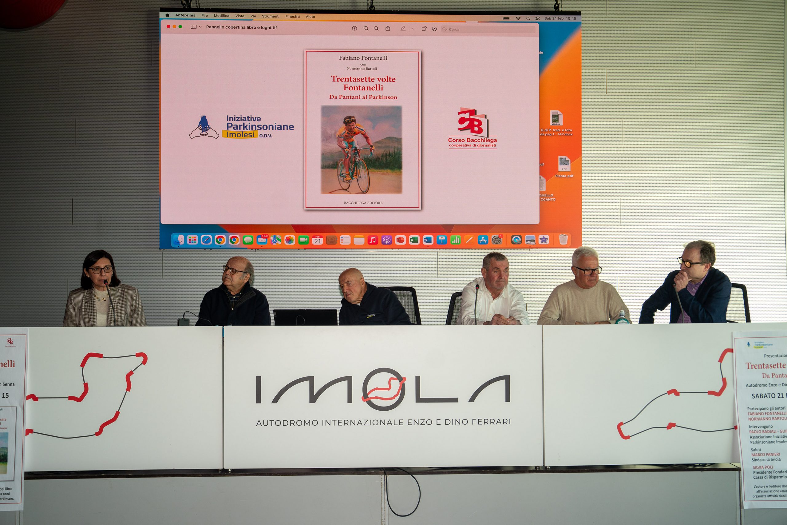Tanto pubblico oggi pomeriggio all’autodromo di Imola per la presentazione del libro «Trentasette volte Fontanelli. Da Pantani al Parkinson» (Bacchilega Editore), che racconta le 37 vittorie da professionista, le corse a fianco di Pantani e ora la gara più dura contro il Parkinson dell’ex ciclista Fabiano Fontanelli.