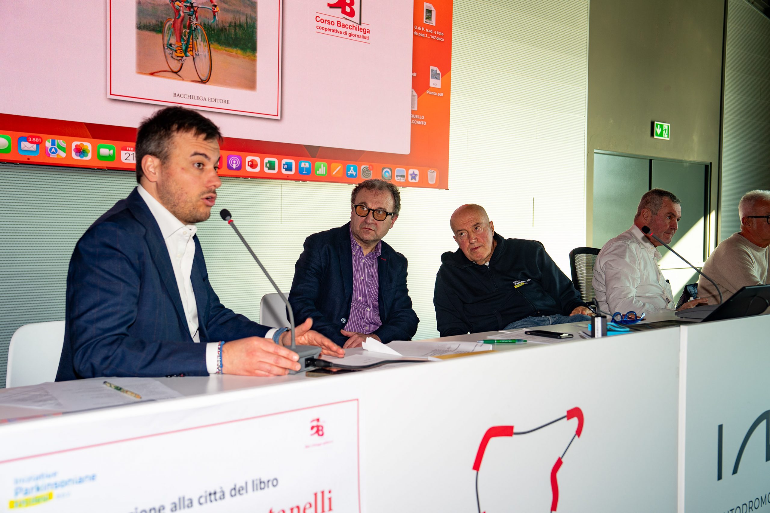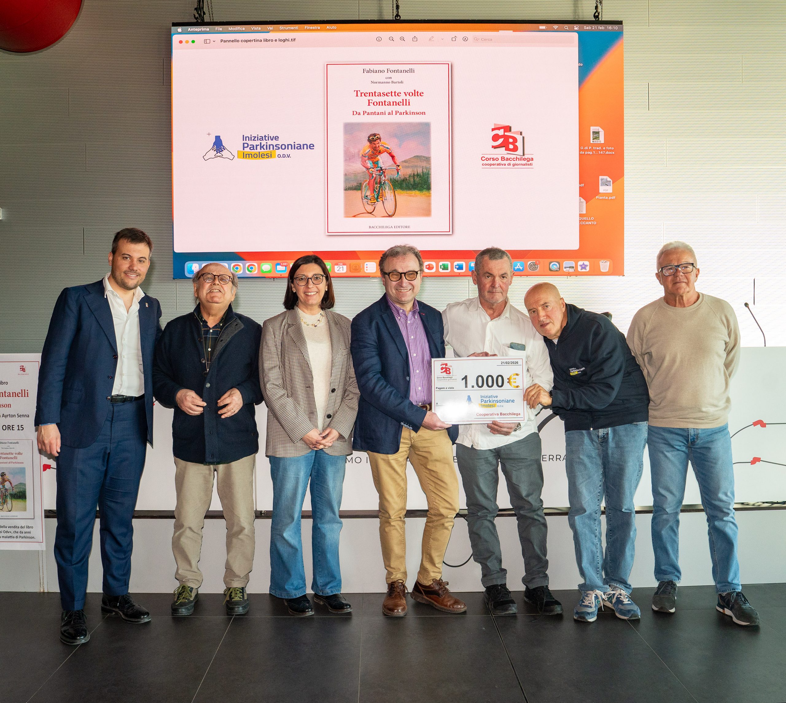 Durante la presentazione del libro all’autodromo, infatti, il presidente della Cooperativa Bacchilega Paolo Bernardi, assieme agli autori Fontanelli e Bartoli, ha consegnato a Paolo Badiali e Guido Laffi (presidente e vicepresidente di Iniziative Parkinsoniane Imolesi Odv) un simbolico maxi assegno da 1.000 euro. Presenti anche il sindaco Marco Panieri e la presidente della Fondazione Cassa di Risparmio di Imola Silvia Poli.