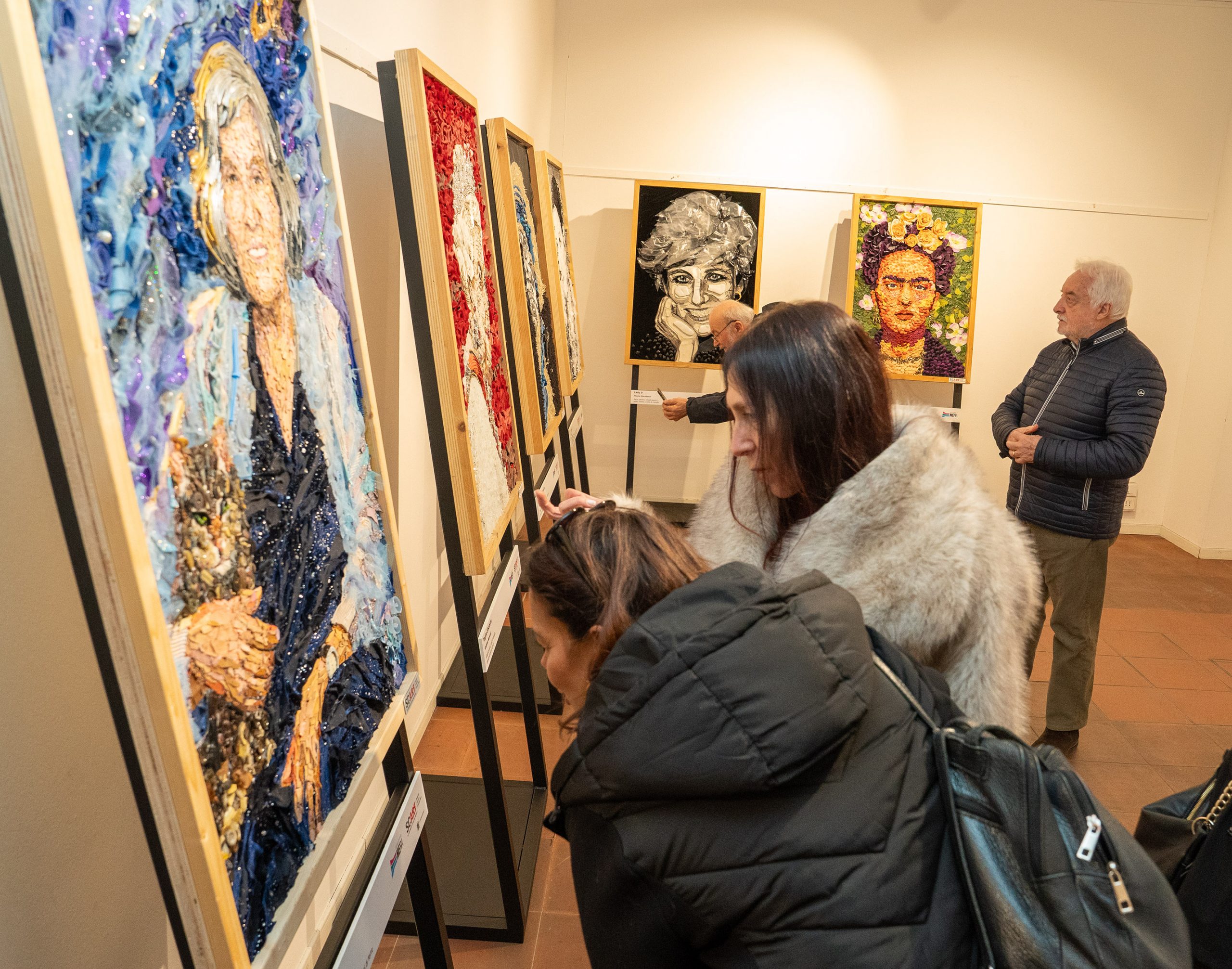 Le opere sono realizzate dal laboratorio permanente Scart del Gruppo Hera. «Un progetto che intreccia arte contemporanea, sostenibilità, memoria e diritti» ha sottolineato la sindaca Francesca Marchetti. La mostra sarà visibile fino al 2 Giugno, anche questa data significativa (Festa della Repubblica) che in mostra viene omaggiata con l’unico ritratto maschile presente, quello del Presidente della Repubblica Mattarella.