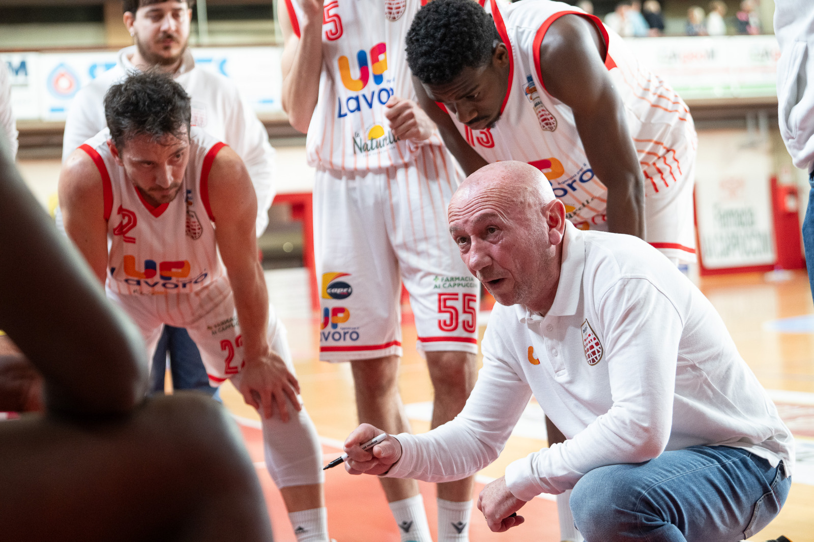 Primo quarto di studio (direbbero quelli del calcio) e senza neanche un fallo. Lo studio non porta a grandi risultati nel secondo quarto dove si gira in un equilibrio frenetico. Raucci e Moffa (dalle scarpe rosa fluorescenti) fanno +6 (massimo vantaggio). Rintuzzato da Jesi che poi deborda nel terzo quarto. Piccolo controbreak biancorosso (9-1), ma Nicoli fa bis da tre e fa male. Nell’ultimo quarto Jesi va a +19. Sanguinetti fa un gioco da 4 è Imola si scopre a -8 con 129 secondi da giocare. Troppo tardi.