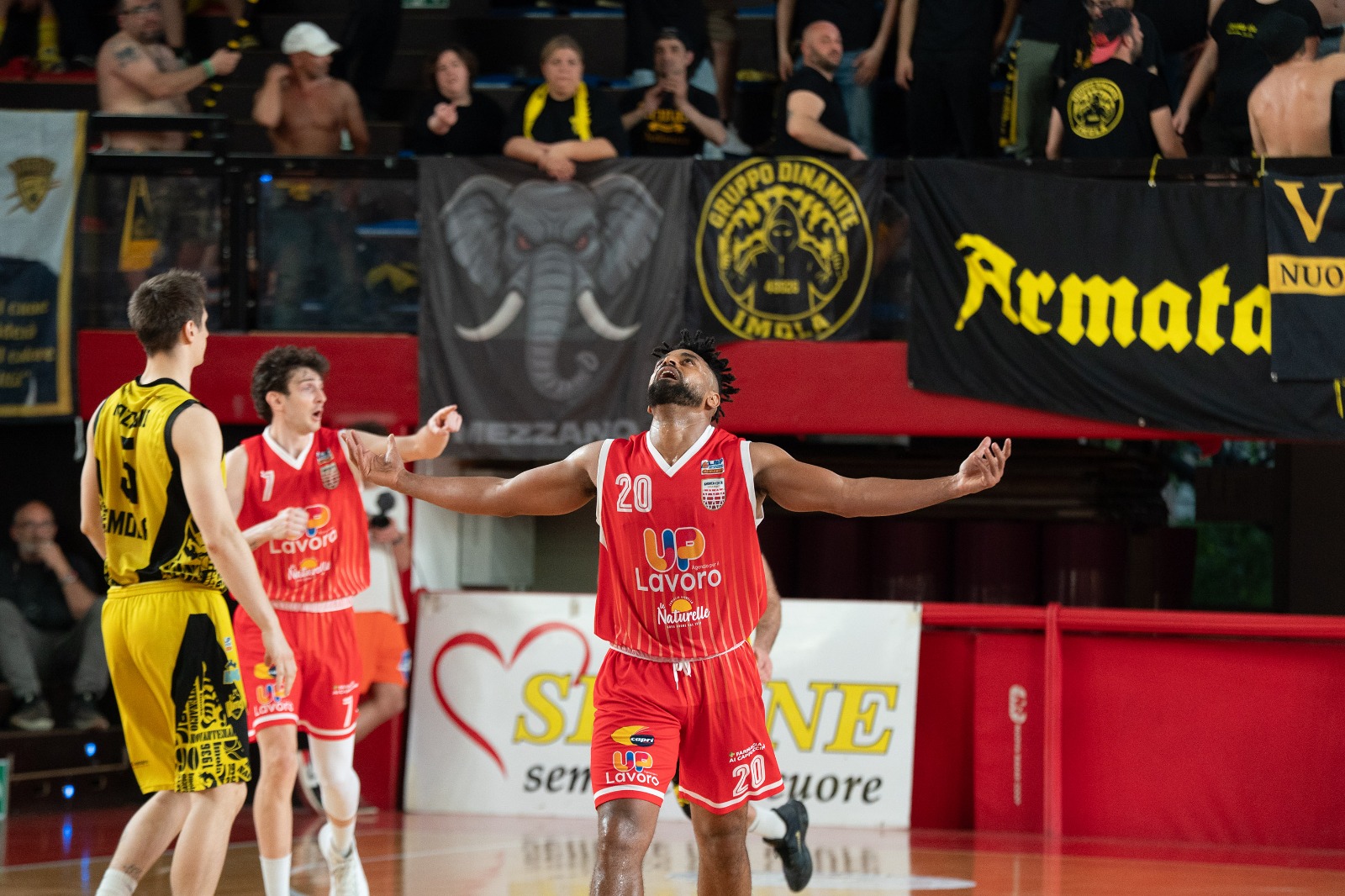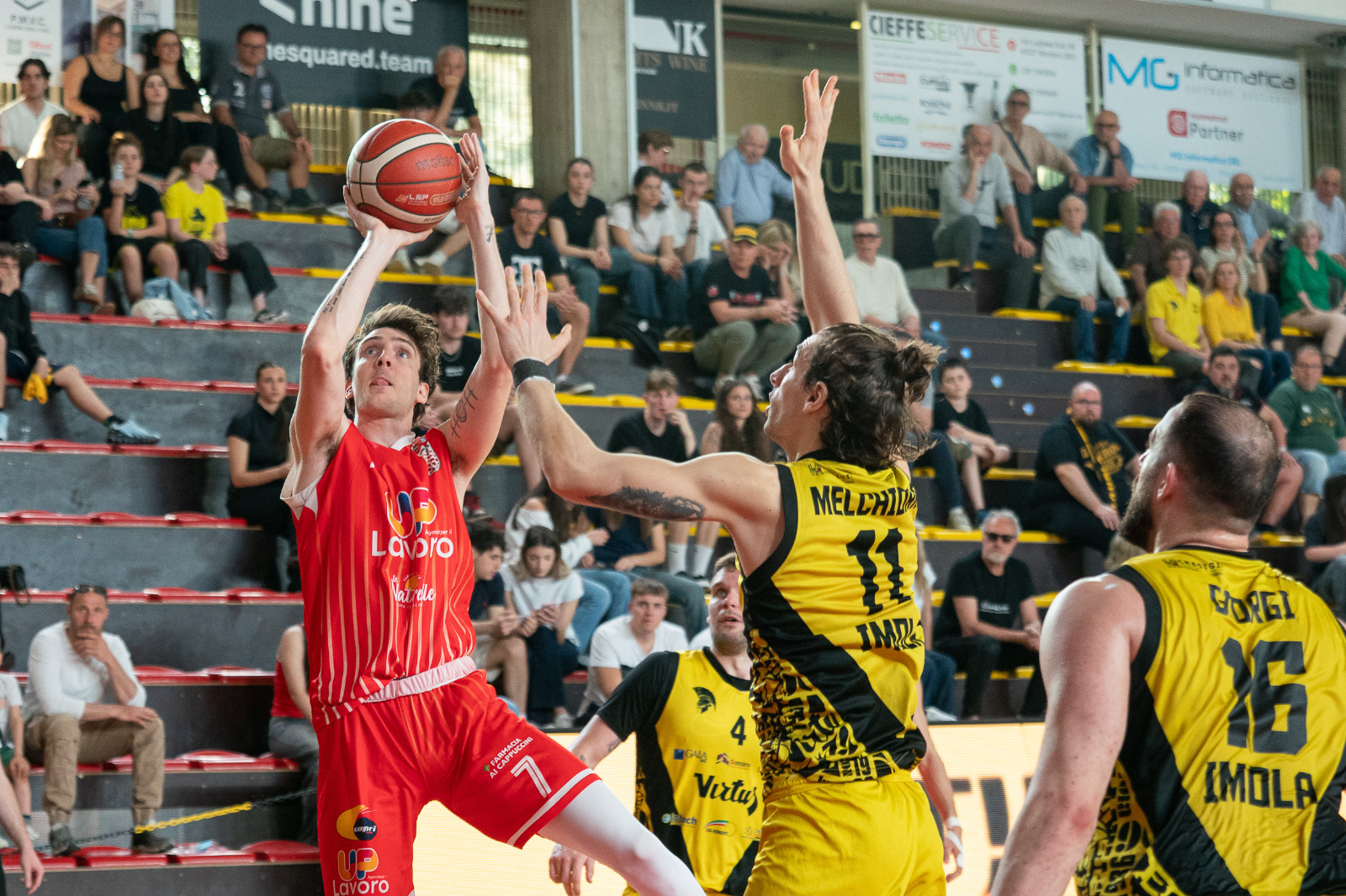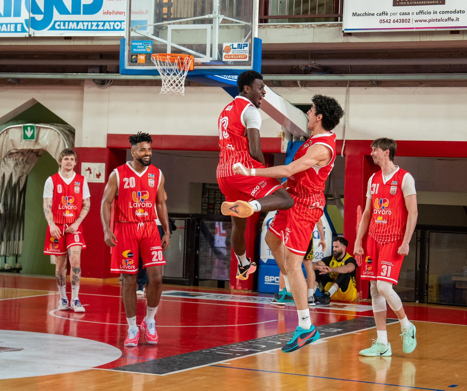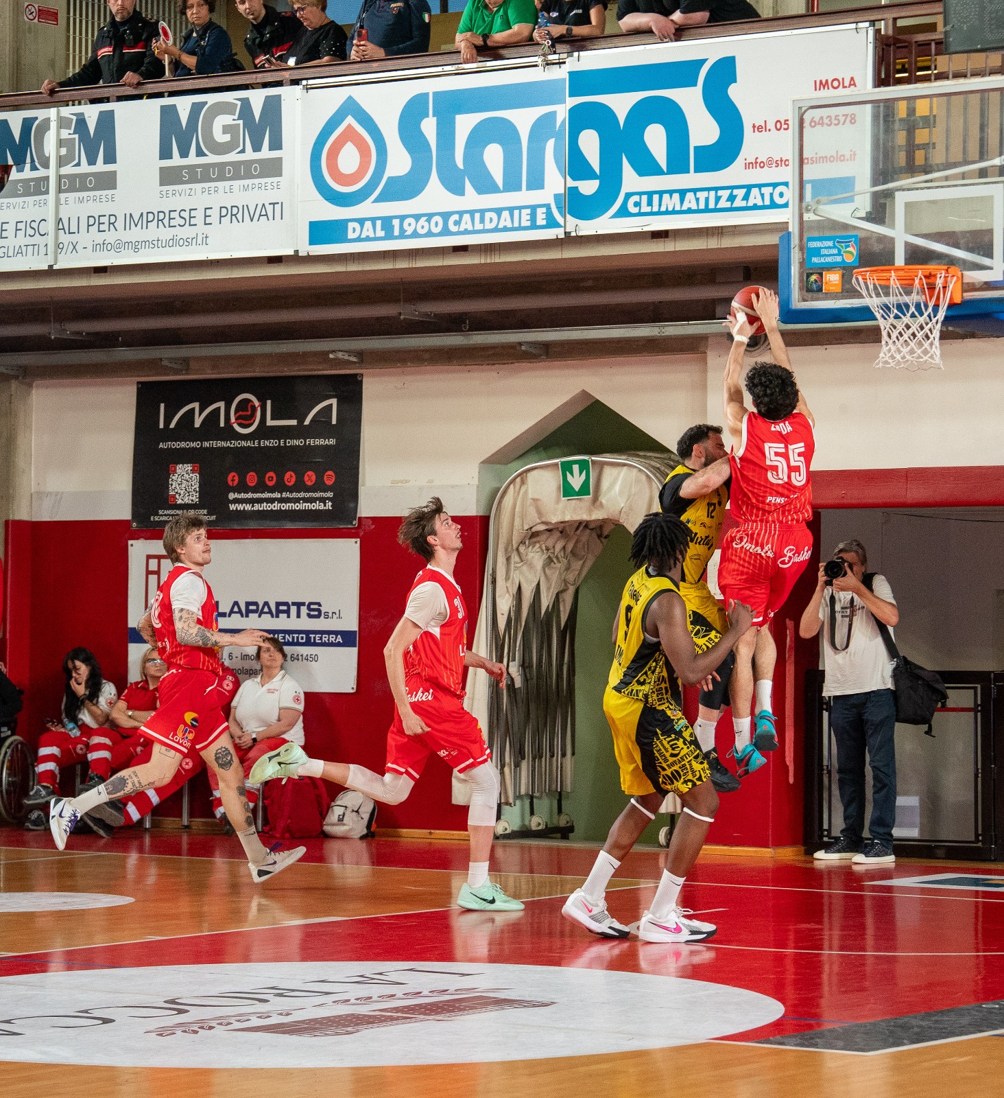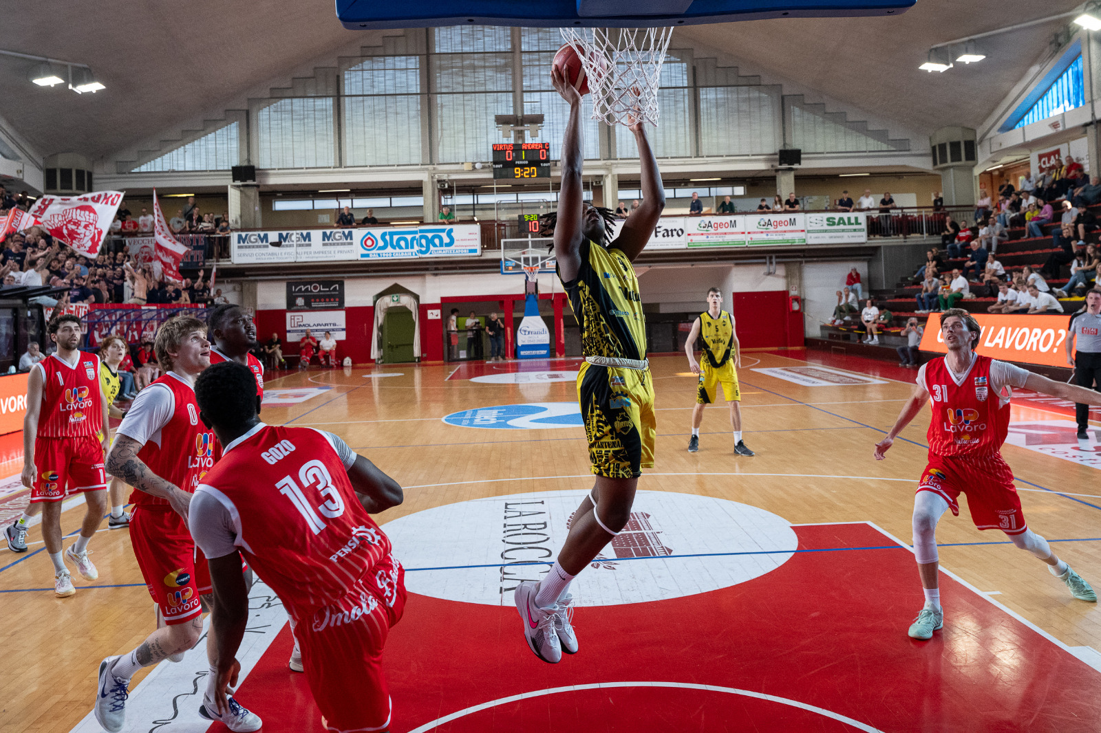 Secondo quarto nel segno di Raucci (capitano di serata) che ne mette 8. Nell’Andrea Costa anche Abati Toure e Gozo fanno canestro.