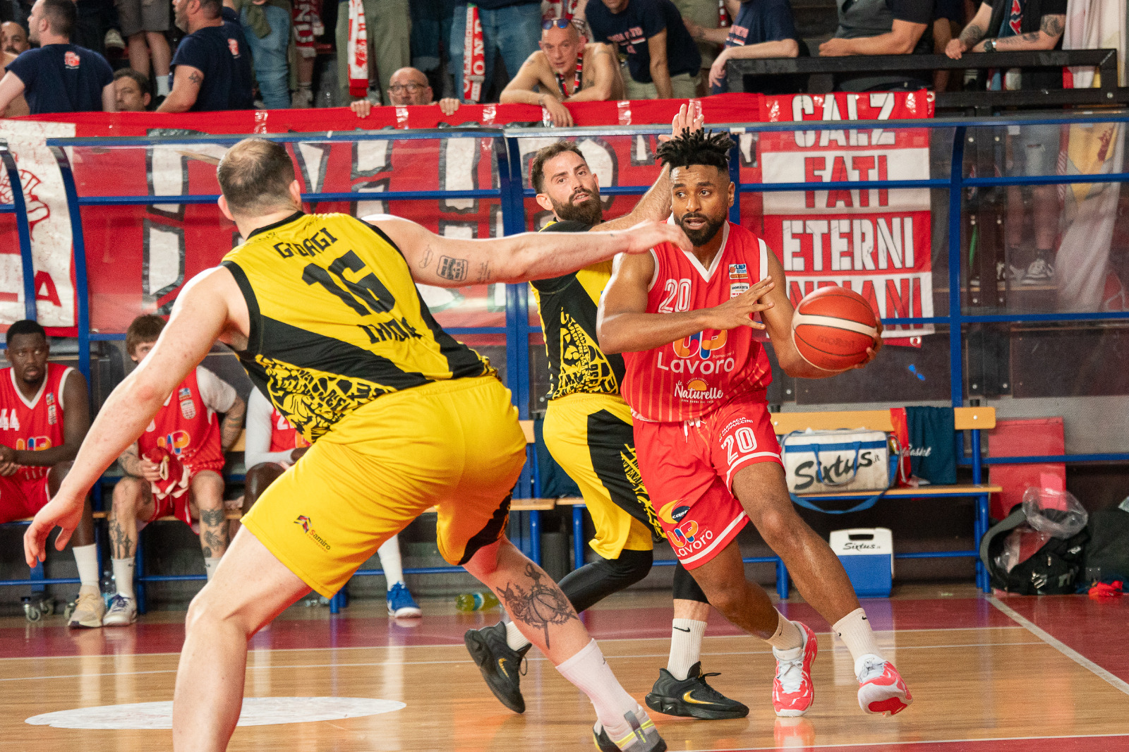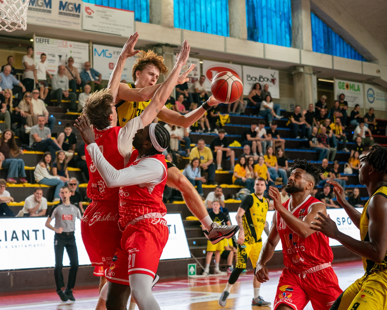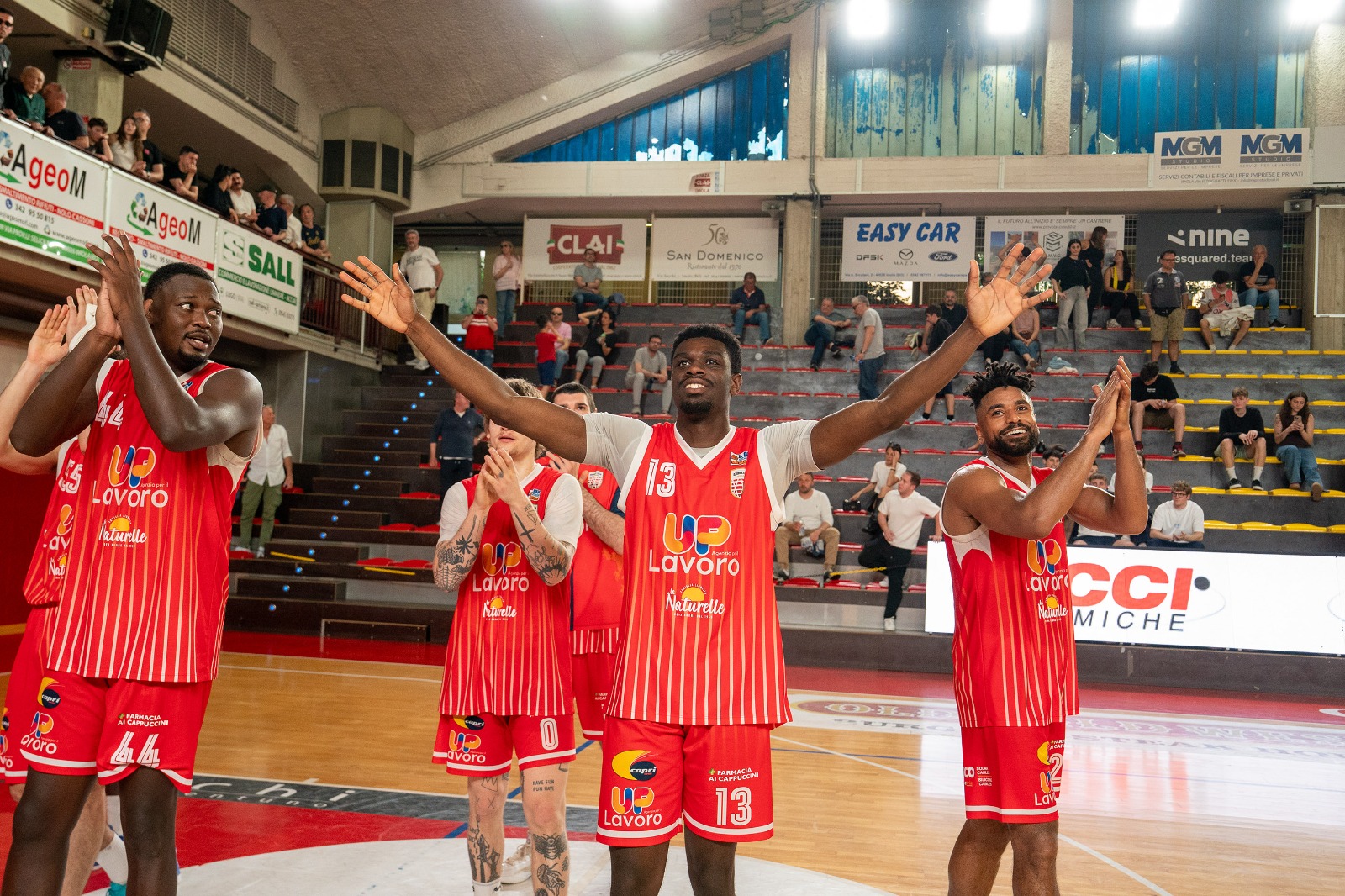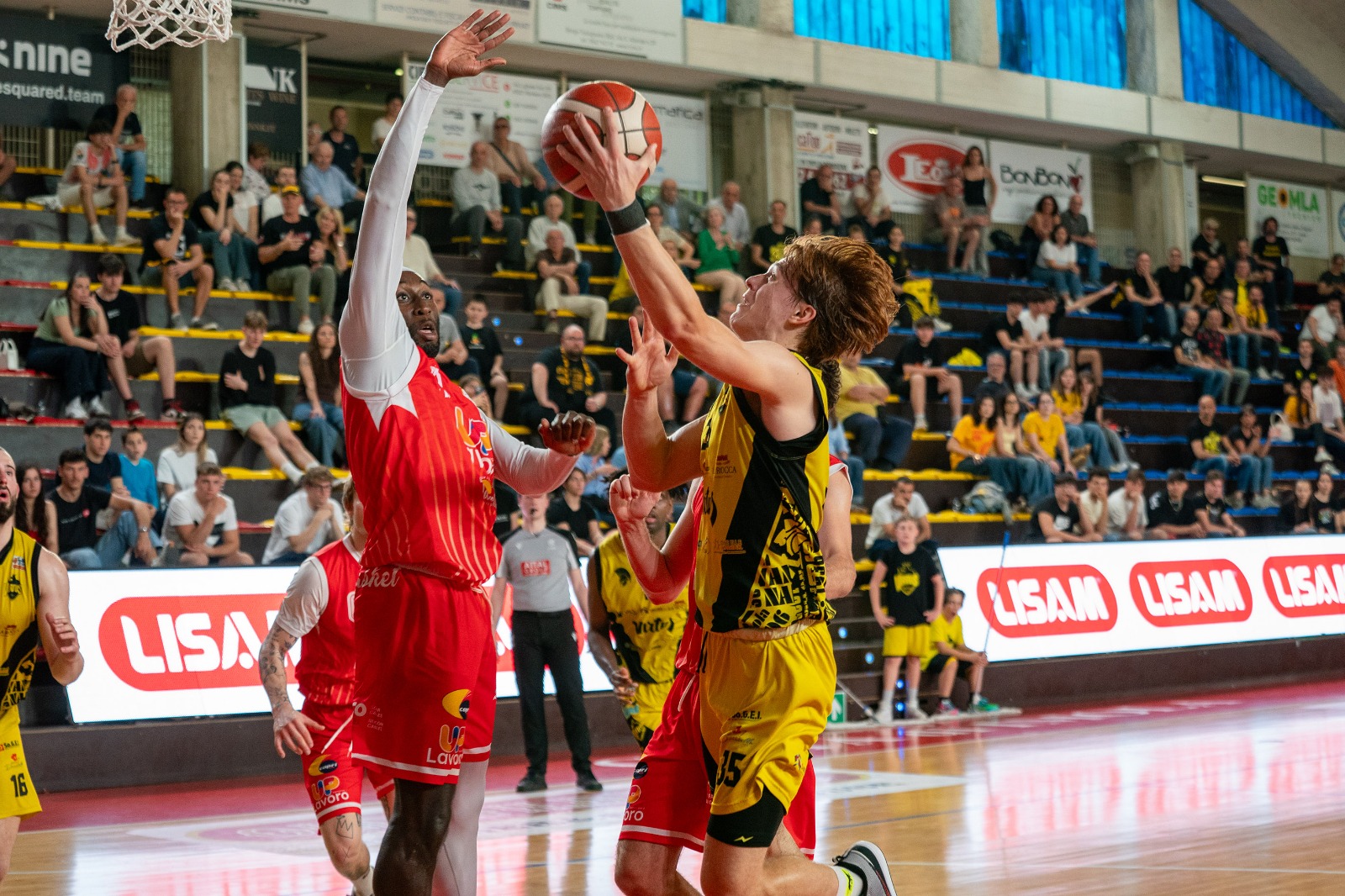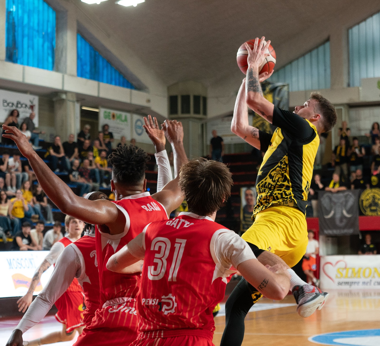 Secondo quarto nel segno di Raucci (capitano di serata) che ne mette 8. Nell’Andrea Costa anche Abati Toure e Gozo fanno canestro.